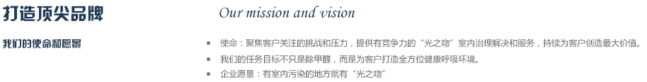 2012年公司斥巨資從德國專業(yè)空氣研發(fā)實(shí)驗(yàn)室引進(jìn)銳鈦型納米二氧化鈦研發(fā)成果,同時(shí)與國內(nèi)知名高校進(jìn)行合作,成立“光之吻”品牌,致力于為人類創(chuàng)作純凈,健康的呼吸環(huán)境,成為你身邊的健康衛(wèi)士,實(shí)現(xiàn)365天健康呼吸的夢(mèng)想,目前是同類產(chǎn)品中最有競(jìng)爭力的品牌之一。